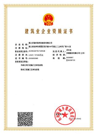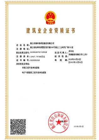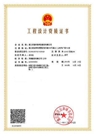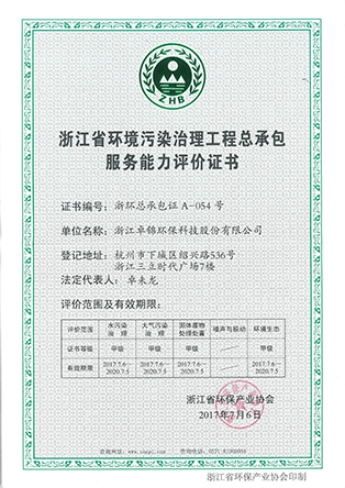 浙江省環(huán)境污染治理工程總承包環(huán)境能力評(píng)價(jià)證書