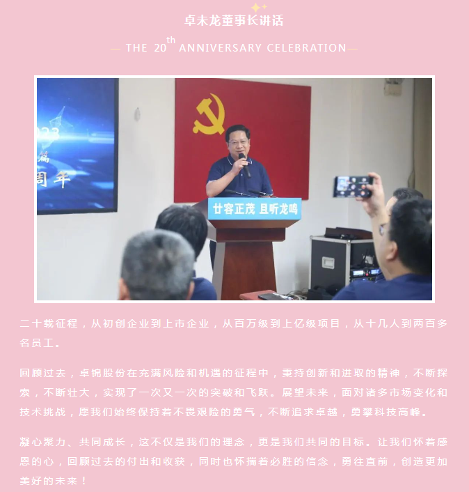 砥礪奮進(jìn)二十載 凝心聚力開(kāi)新篇 丨慶祝卓錦股份成立20周年