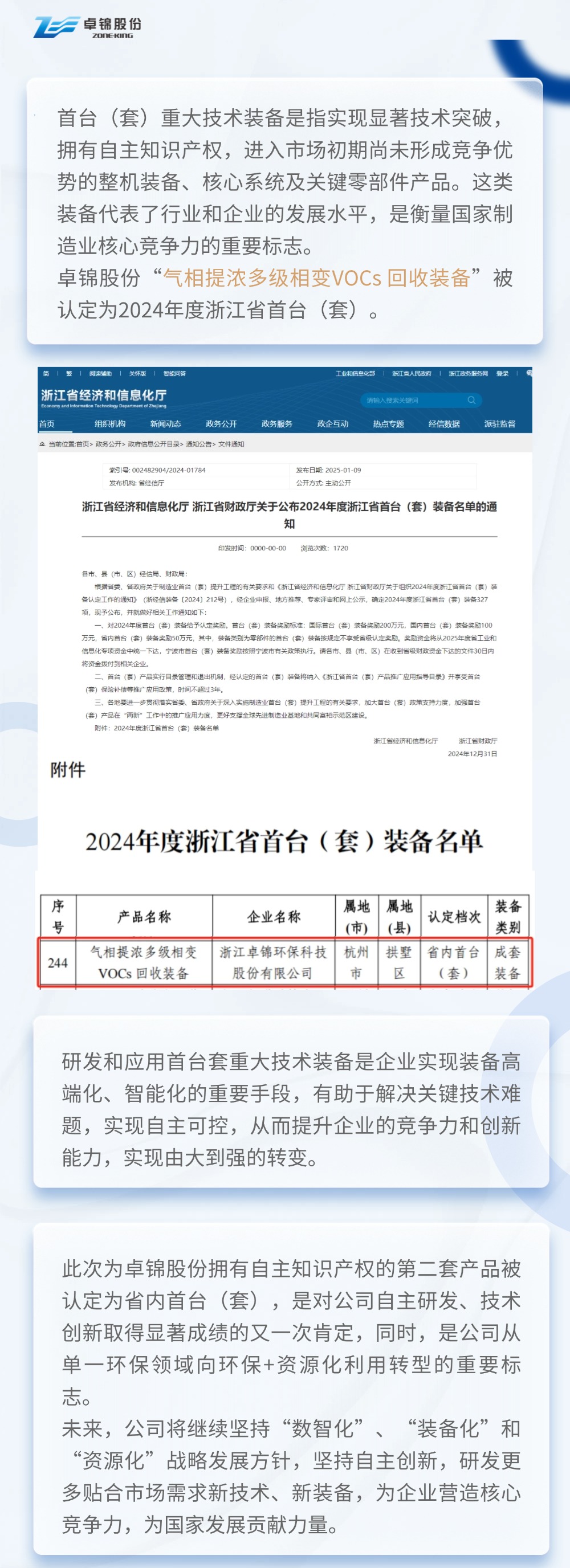 喜報(bào) || 卓錦股份“氣相提濃多級(jí)相變VOCs 回收裝備”被認(rèn)定為浙江省首臺(tái)(套)